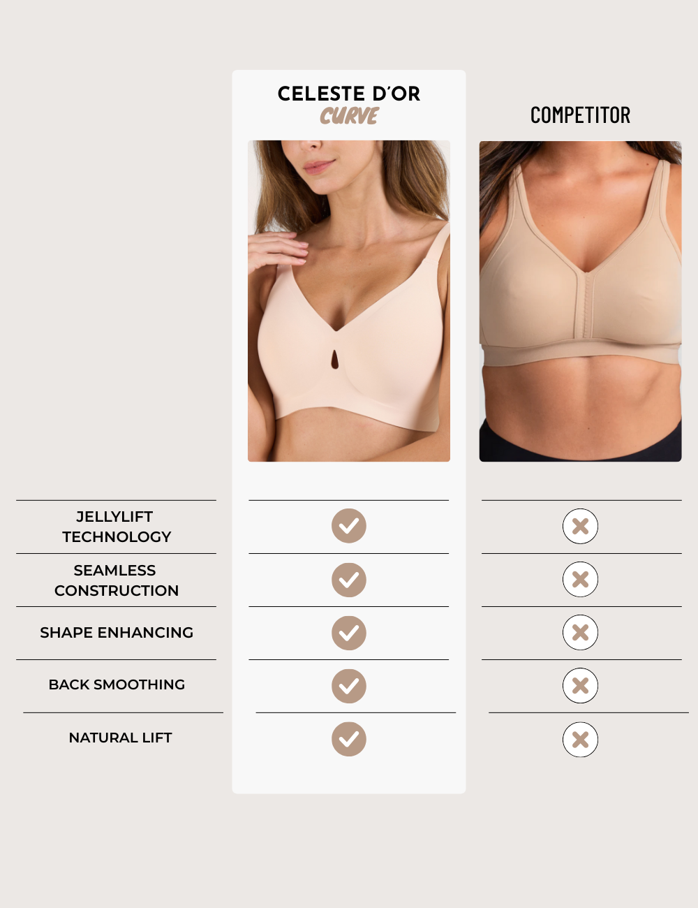 Engineered with W-shaped jelly strips that mimic the effect of underwire, offering gentle lift and structured support – minus the discomfort.